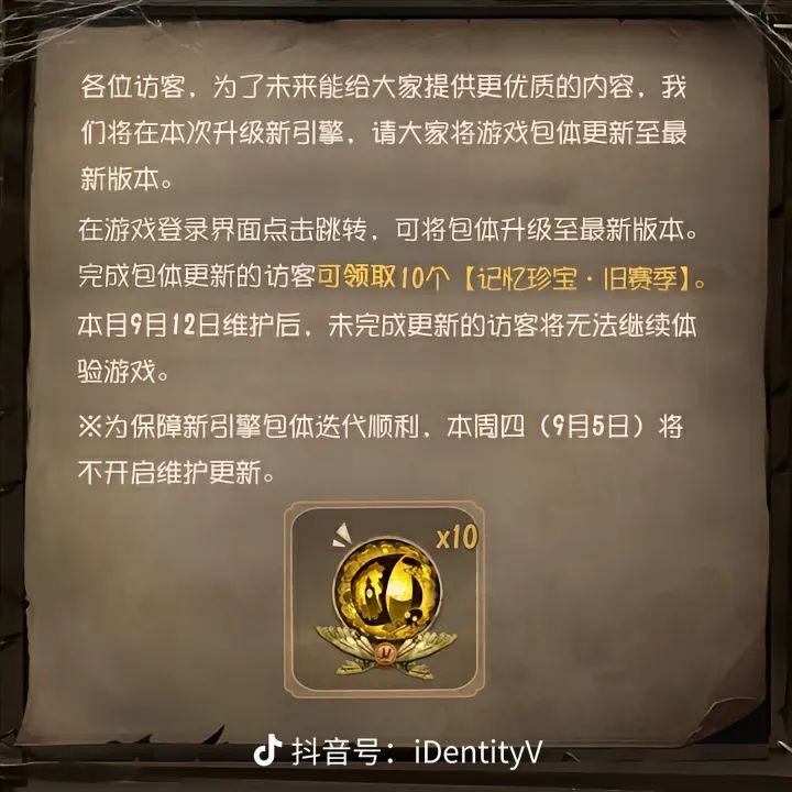 新引擎要来啦!大家要注意把自己的名字和数字id记住,防止明天更新丢失账号!还有就是明天更新完登录即送记忆珍宝十连,祝大家都欧气满满哦~