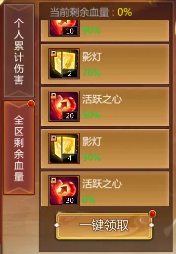个人对世界首领造成的伤害达到一定值时,可逐步解锁各种奖励,输出越高,奖励越丰富!对世界首领造成的所有伤害都会计入累计值。