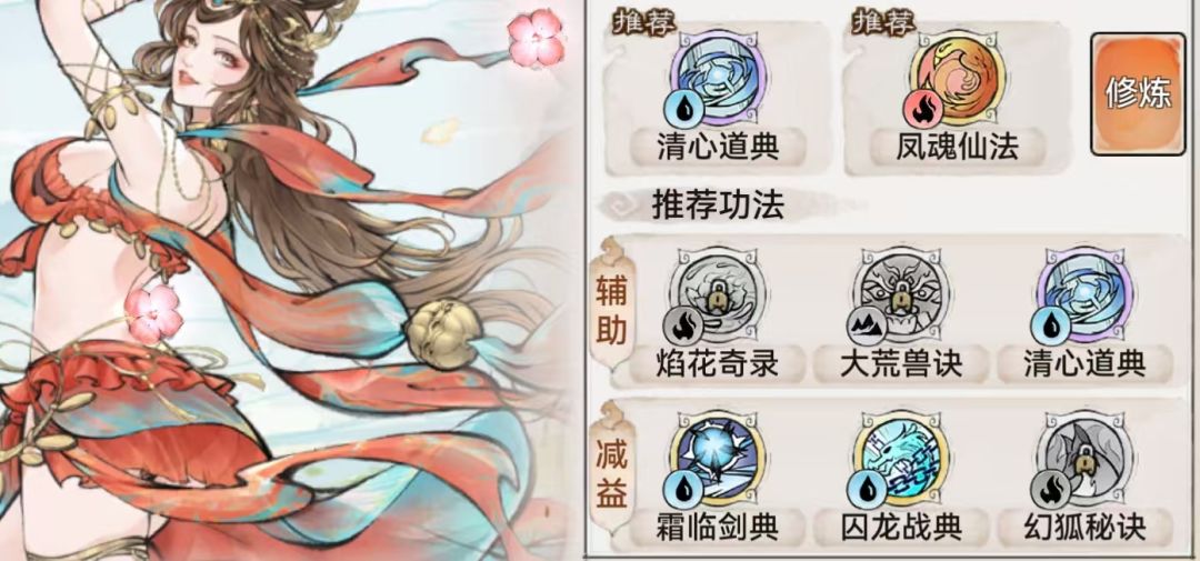 推荐使用霜临剑典和净化功法或者复活都可,增强先手优势和控制能力。,专属功法焰花奇录,平民无需考虑,提供了额外的伤害和生存能力。