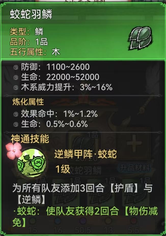 1阶法宝推荐羽鳞,2阶法宝推荐刃鳞,这些法宝都有反伤机制,与秦冰的天命和技能相契合。