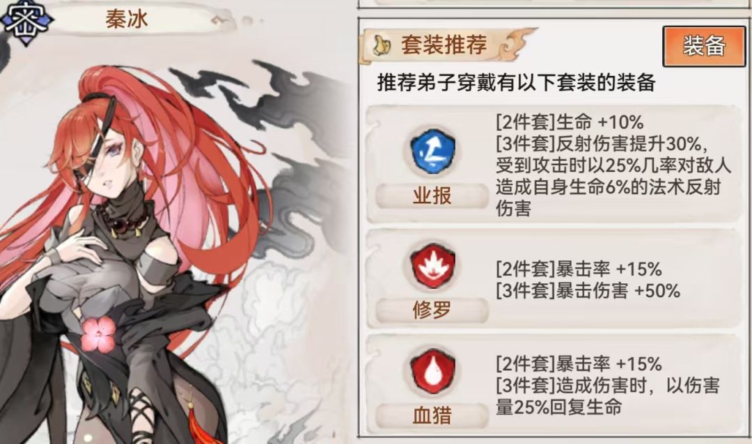 秦冰适合中氪玩家选择,平民玩家需要等到第三天命才能更好地发挥秦冰的作用。可以考虑李清圣,可以选择秦冰+熊猫前排,主C使用系统赠送的逆天弟子女剑或者五行剑都可,前期要打五行塔,注意灵根的泛用性。