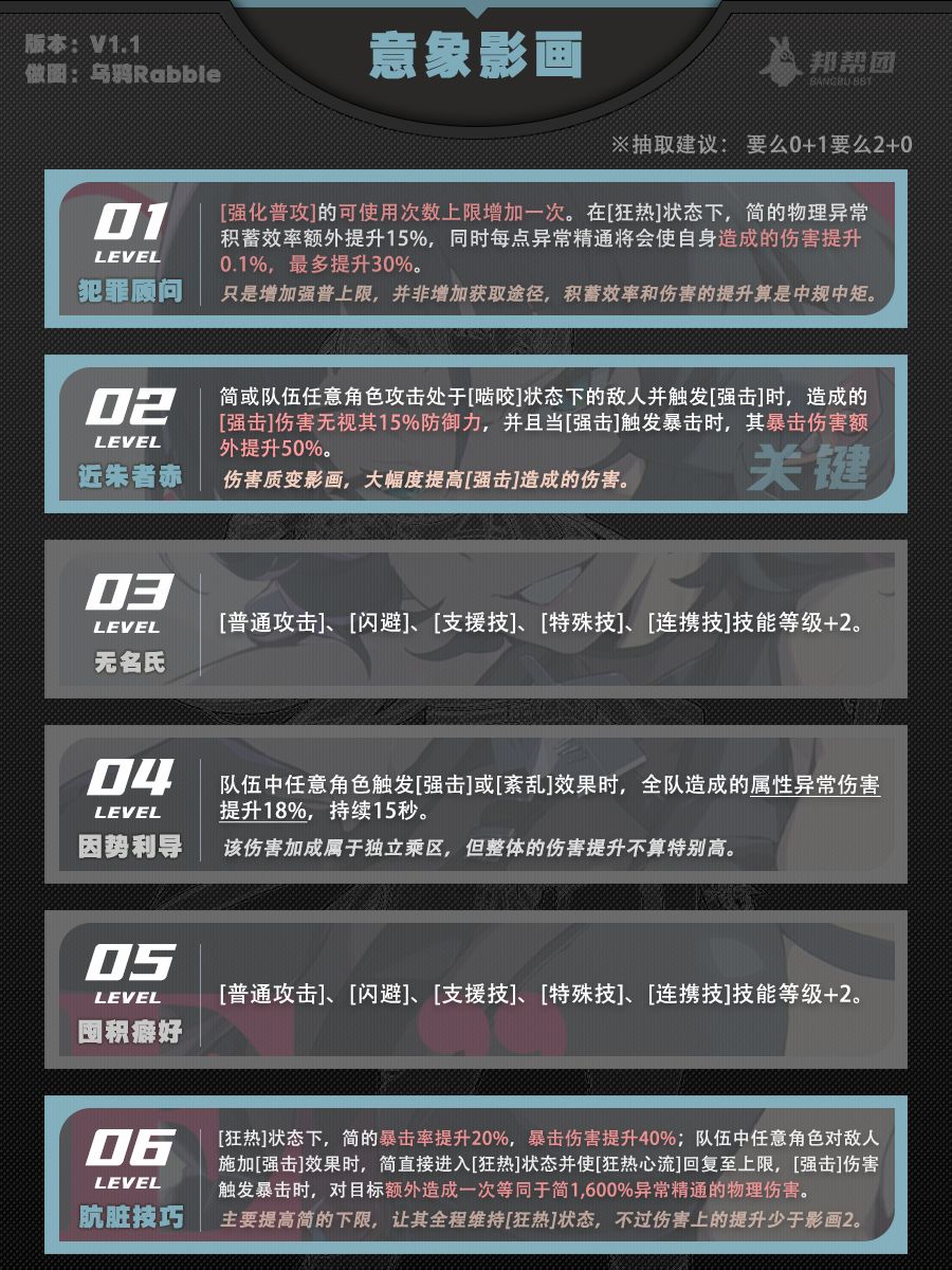 【1.1攻略征集】简·杜角色攻略一图流 | 养成&手法&配队教学