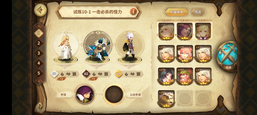 如图,白位公主,要求金。黑位蓝尼德(如果无可以问公会嫖一个当参谋用,效果要差一点)。金位艾利欧,我的艾利欧还没金,有点尴尬。参谋随意,粉贾汉最好,要是不太能扛得住就带个能奶的。