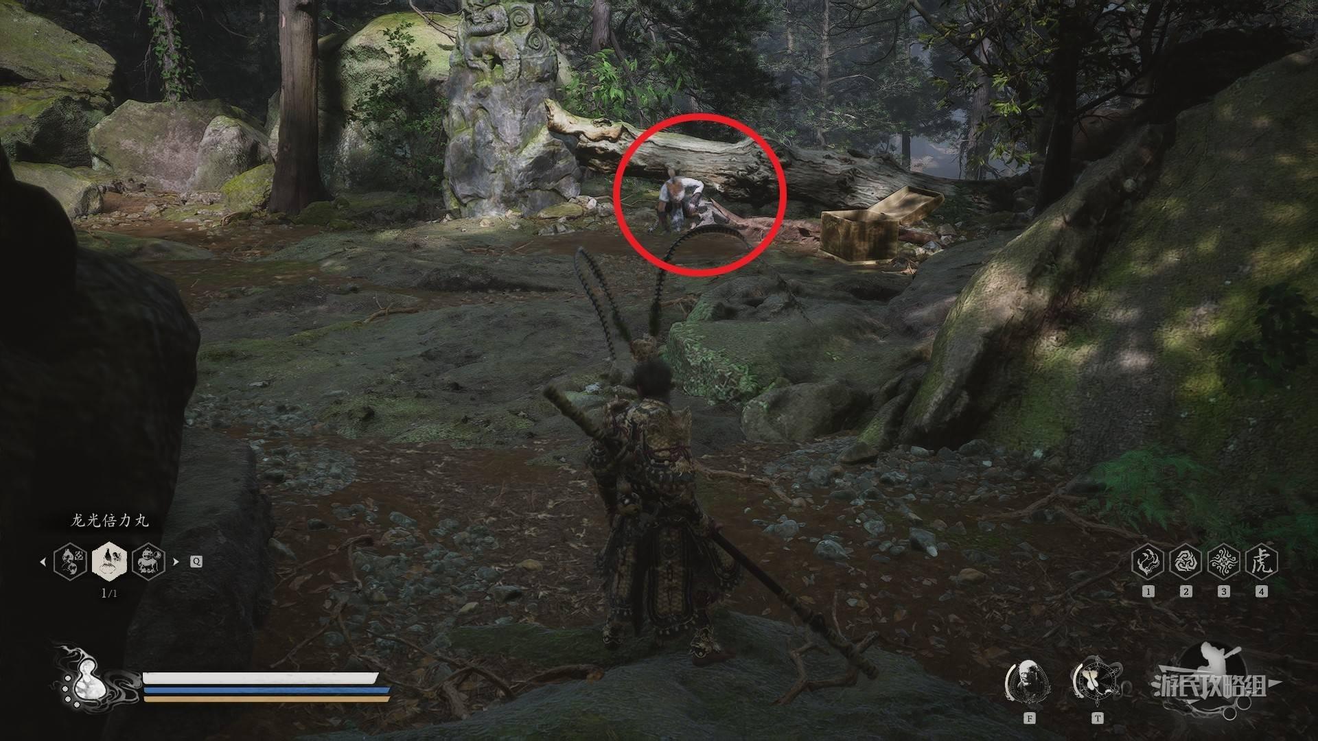 在跟随剧情看到BOSS牯护院前的山路上。从【前山】土地庙出发,往回走,即可在道路右侧看到这个敌人,它就在宝箱旁边。