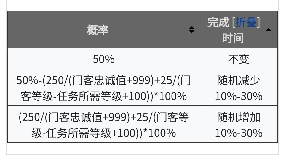 门客完成任务的实际时间和派遣所需时间可能是不一样的,该波动与忠诚和评价有关