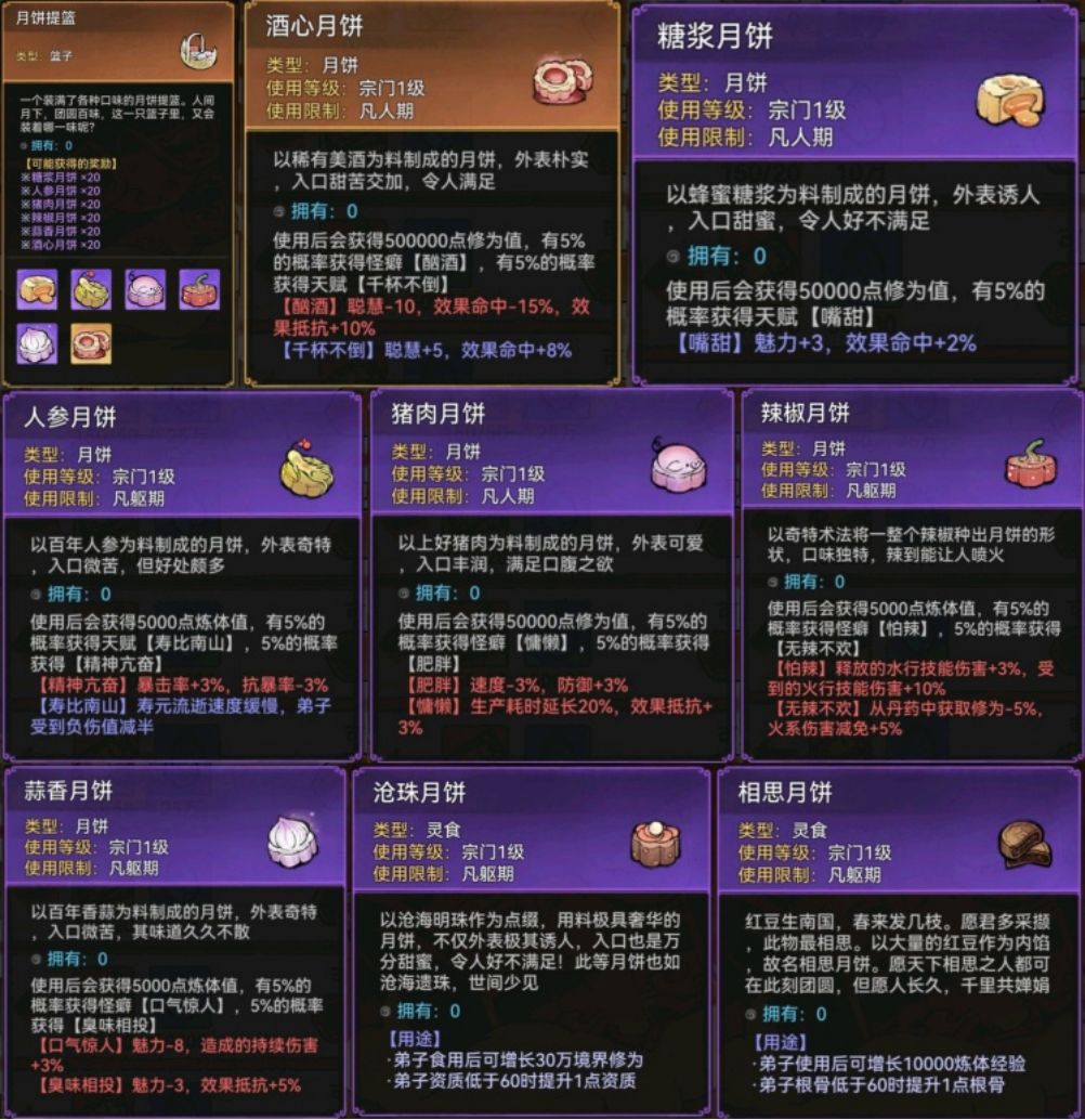 月饼提篮及月饼数据,图片来自攻略服