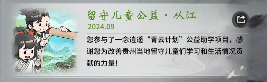 曾购买2024年公益助学礼包的仙友将能通过邮件领取新公益卡·从江公益详情可前往【传记】-【公益】查看