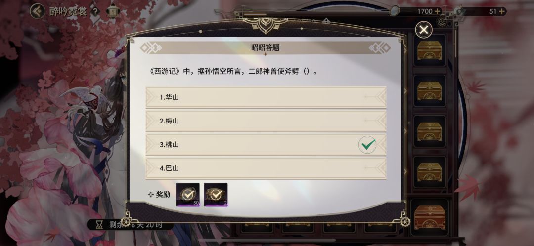 《西游记》中,据孙悟空所言,二郎神曾使斧劈(3.桃山)。