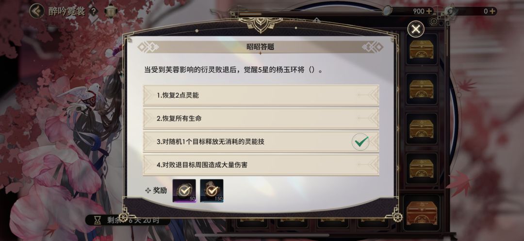 当受到芙蓉影响的衍灵败退后,觉醒5星的杨玉环将(3. 对随机1个目标释放无消耗的灵能技)。