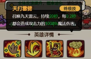 终极技能:天打雷劈大显神威,召唤九天雷云,技能持续时间20秒,每0.2秒造成攻击力的1000%魔法伤害伤害非常惊人!