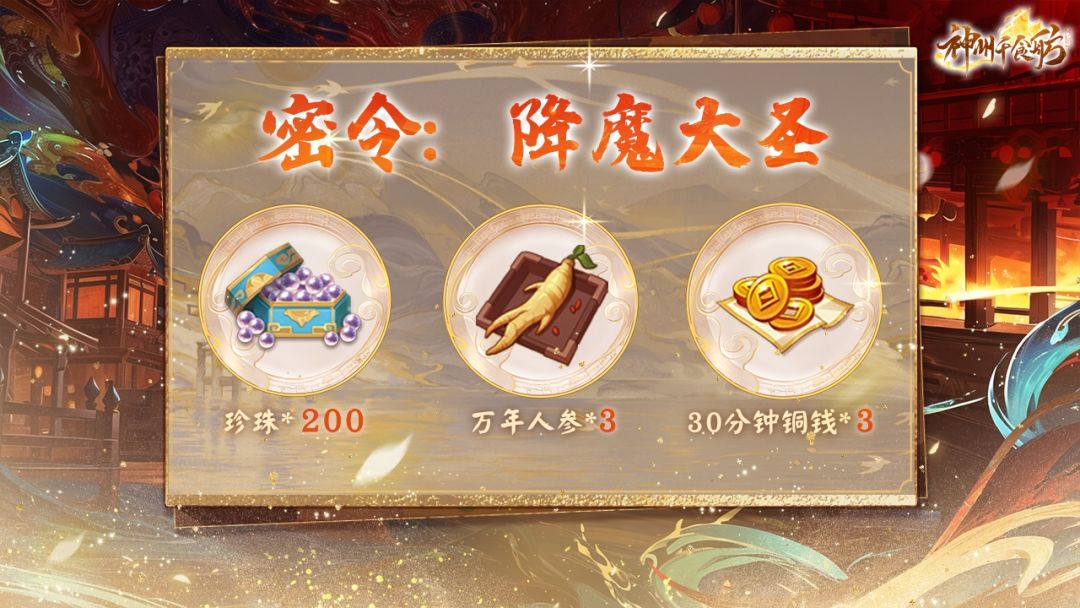 奖励详情:珍珠*200,万年人参*3,30分钟铜钱*3