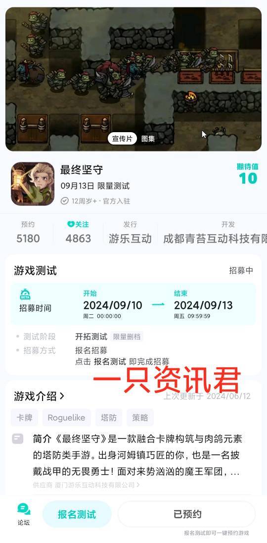 《最终坚守》手游是一款融合高自由度肉鸽元素的卡牌塔防类游戏,9月13日10:00游戏首次测试正式开启!