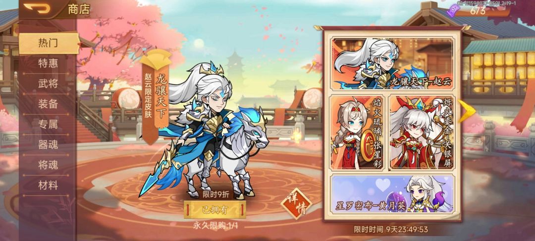 活动内容:赵云,张星彩,关银屏,黄月英限定皮肤商城热卖!