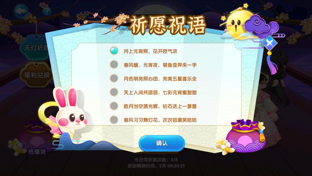 在福袋墙内开启其他馆长的福袋,可拼手气获得许愿小灯或玉兔发夹奖励,展示欧气的时候又来啦,看看是谁福袋抢得多~