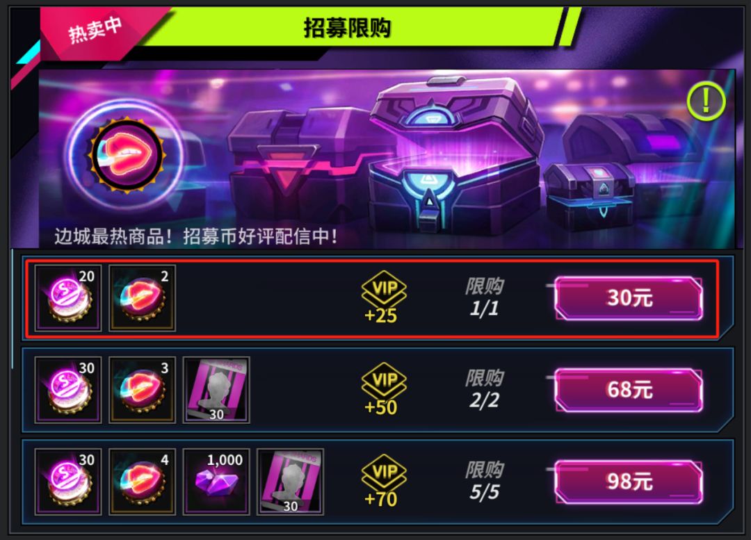 新增30元限购礼包:这几个30元礼包性价比都跟周卡不相上下,以后68元周卡怕不是要变成每周98了。不过很奇怪的是影院限购并没有更新这样的30元礼包,不知道是不是策划忘了投放。