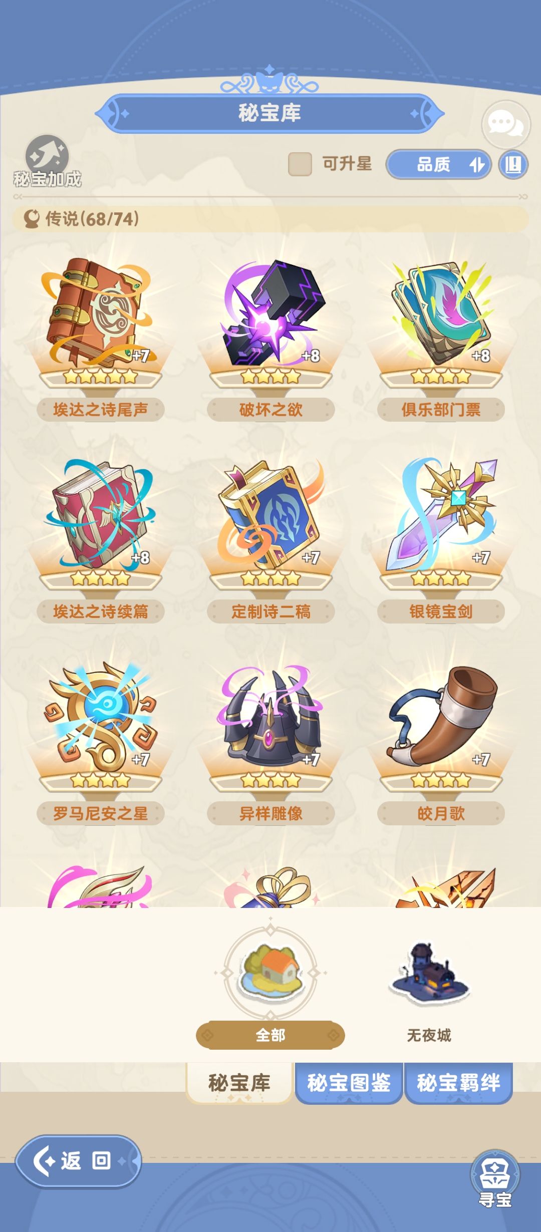 两个号都是所有特殊秘宝都拿,加上捕风袋升星一次