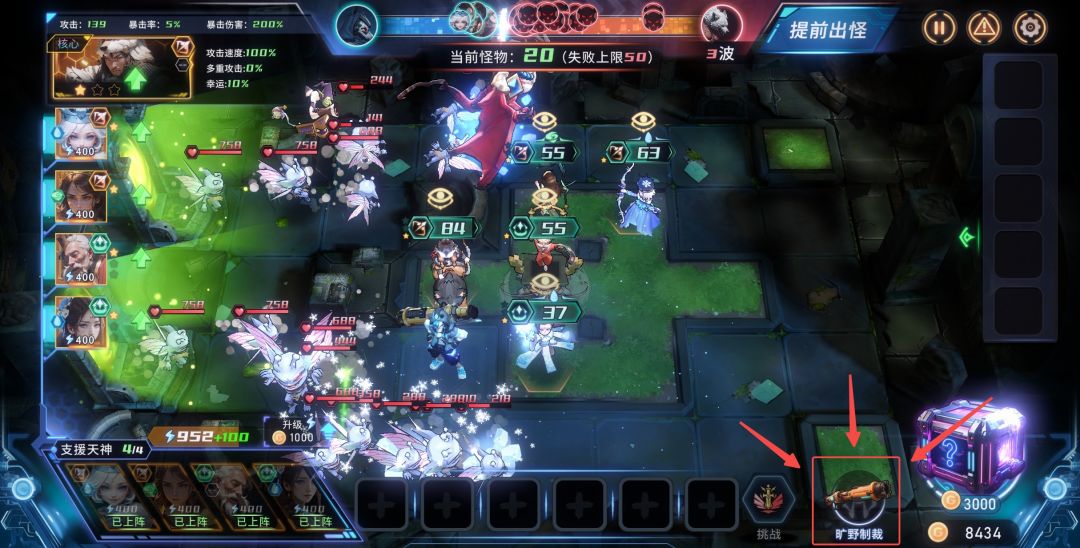 创世之怒,是创世者目前能够获取到的强力输出型武器。一旦激活这件武器,就能够对全场的敌人进行一次无差别的全场炮击。推荐配合”提前出怪“,可以快速获取开局资源。又或者帮助快速的在怪物过多时一次性通过全体伤害快速削减数量。
