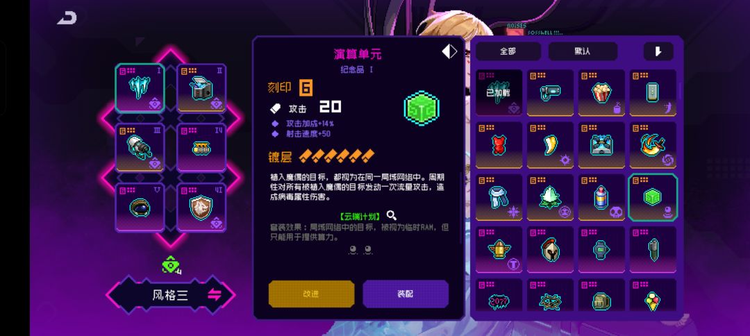 模组补足了这部分缺少的输出,基本上不需要走位,就能吃满雷电引擎和陆战头盔的被动。开局左边的飞行道具可以捡恶魔之翼,反正不飞行换个40%武器伤害也不错。