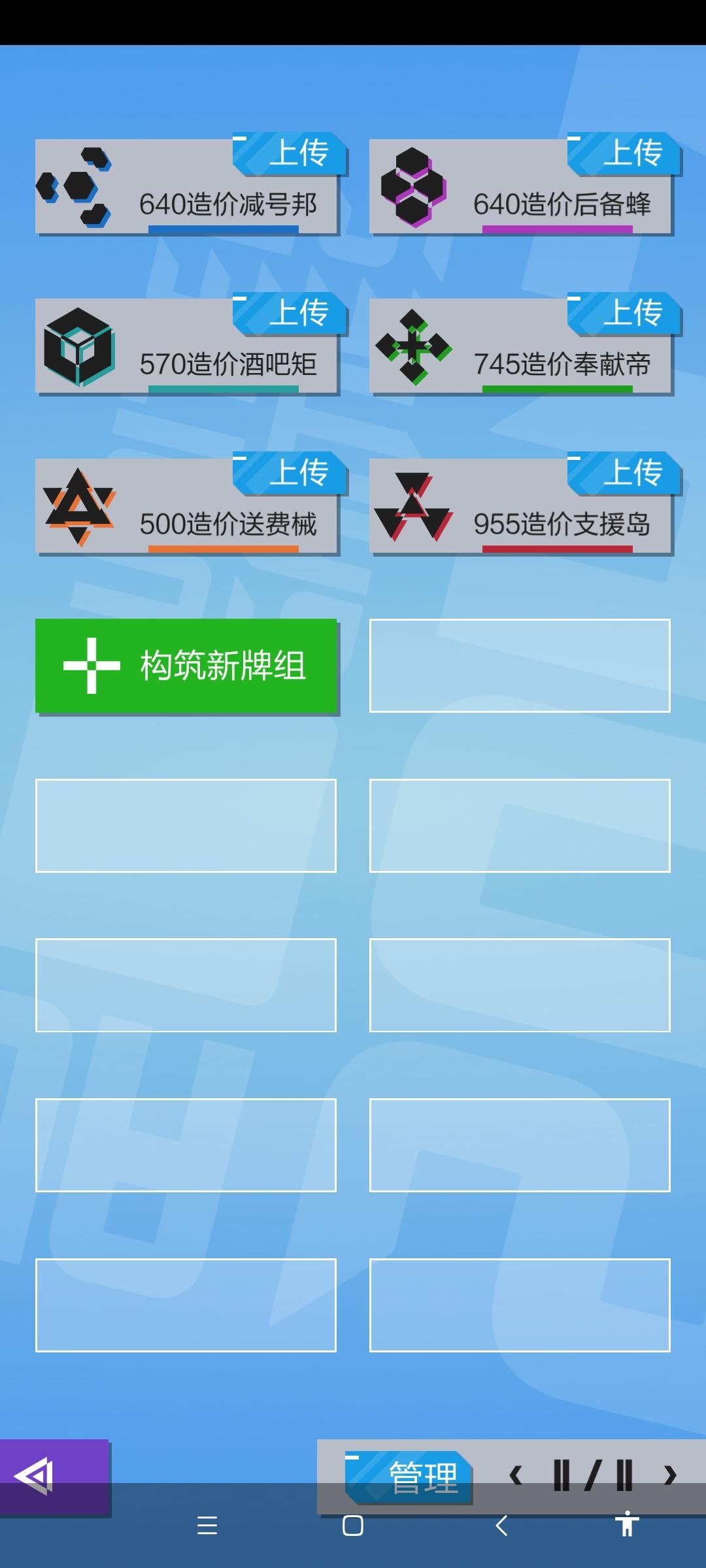 这次也是版本更新后调整的,应该是构筑不了其他的东西了,卡组我先放出来。阵营强度各有高低,毕竟有蓝白卡的限制,新手可以先拿蓝白卡组玩,后面可以换品质更高的卡来组建完成体。想尝试其他阵营的朋友也可以先玩玩蓝白卡组再慢慢扩展,上个君主还是没问题的。
