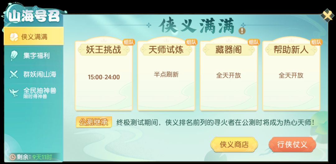 终极测试期间,侠义排名前列的寻火者,在公测时将成为热心天师,陪伴众多的寻火者探险!