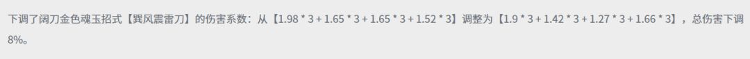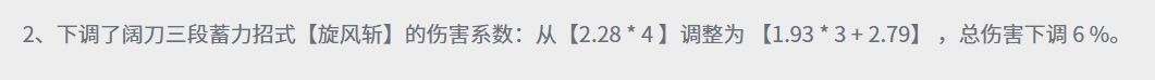 至于阔刀,阔刀的三段蓄力也降低了,总伤害下调了6%。