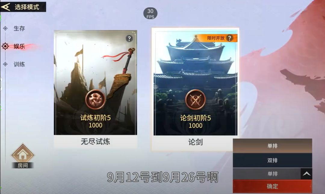 论剑出了1V1,限时开放的,活动期限仅为两周,想玩的注意时间!