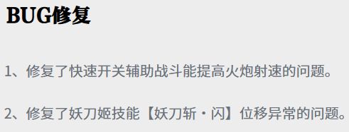 最最最后,就是修复了两个BUG:一个是火炮射速问题;一个是妖刀姬丢【闪】位移异常,不打人的问题。