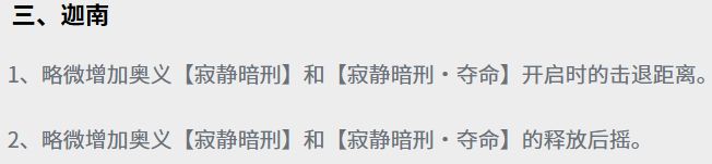 从调整公告中我们可以很直观的看到,迦南开大之后的击退距离增加了。
