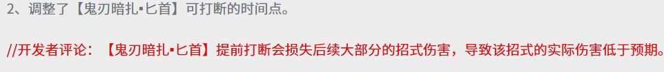 以前是可以打个升龙,再打一套,现在不行,【鬼刃暗扎▪匕首】提前打断会损失后续大部分的招式伤害,导致该招式的实际伤害低于预期。