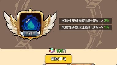当一个元素羁绊达到5星满强化后可以进阶,进阶需要消耗珍贵的元素晶核,相对应的,也能够提升对应元素英雄爆伤和攻击百分比这样的强力属性哦