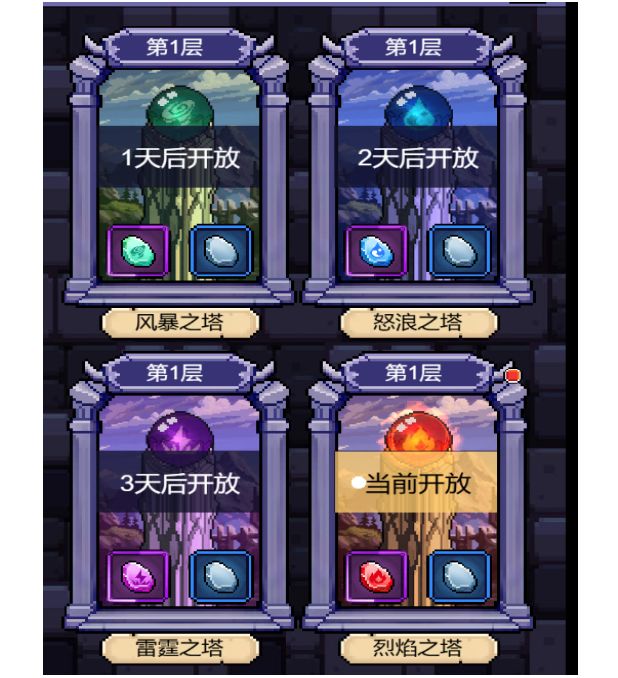 挑战中的元素塔玩法就是主要的元素晶石晶核资源产出处了,玩法每天会开放不同的元素塔给玩家进行挑战,所以玩家务必要留意对应的开放日期哦,错过了就要再等四天了