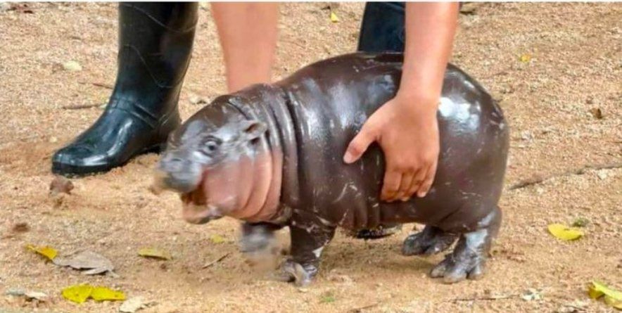 我们所看到的这只小猪还是一只2个月大的迷你河马宝宝,出生于泰国的动物园。为了庆祝它的诞生,动物园发起了起名投票,在Moo Deng(弹跳猪)、Moo Daeng(叉烧/红猪)和 Moo Sab(剁碎的猪)之间,大家选择了最可爱的第一个(也有可能是因为后面两个名字太过惊悚)。