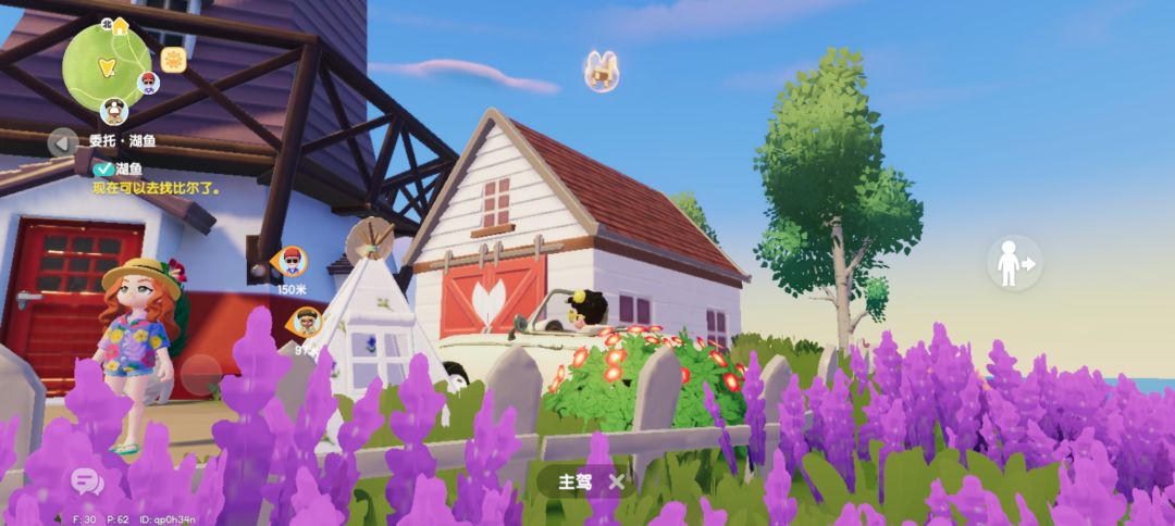 同赏花月(16号),泡泡在花海房顶上方,需要用车子垫一下脚跳上去拿。