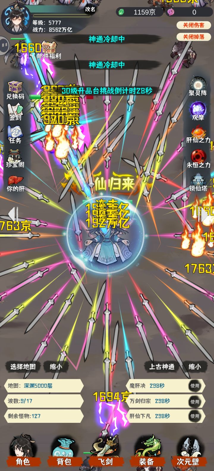 轻轻松松,750%的暴击率,2000万亿攻击,暴击伤害1w,终伤5000,稳过