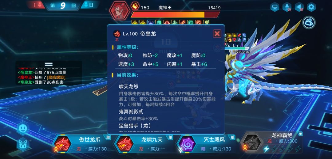 看旁边的帝皇龙,比我还惨,一技能不加暴击....@奥拉星手游