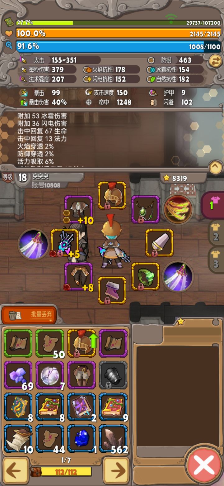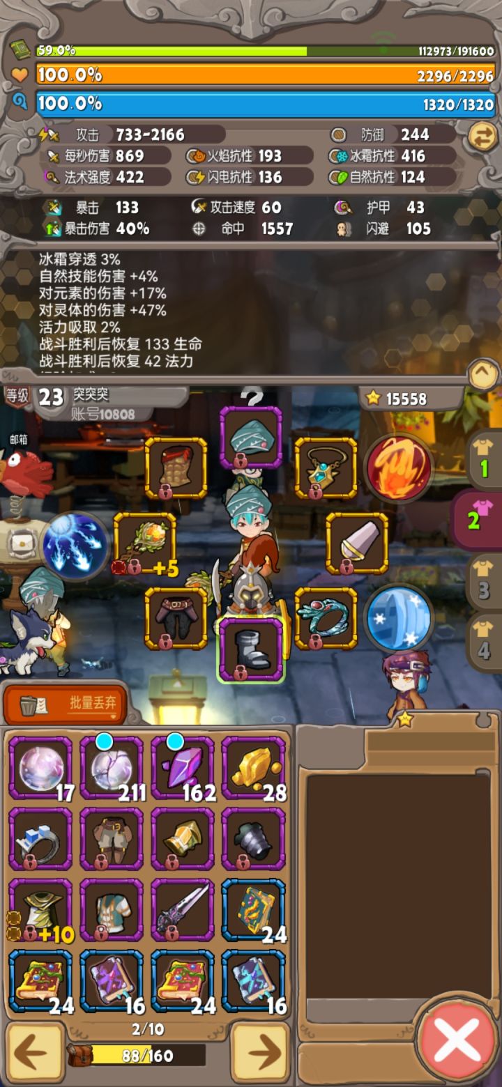 3 第二章 机器人这里会有一点卡手 还是加生命 这时装备可以强化强化了 生命堆起来 有机械增伤更好。同理石头人也是血量堆起来 元素增伤带起打石头人可以把增加血量的装备都强满精满了 过了就舒服了 首充爪子2000血 随便挠了