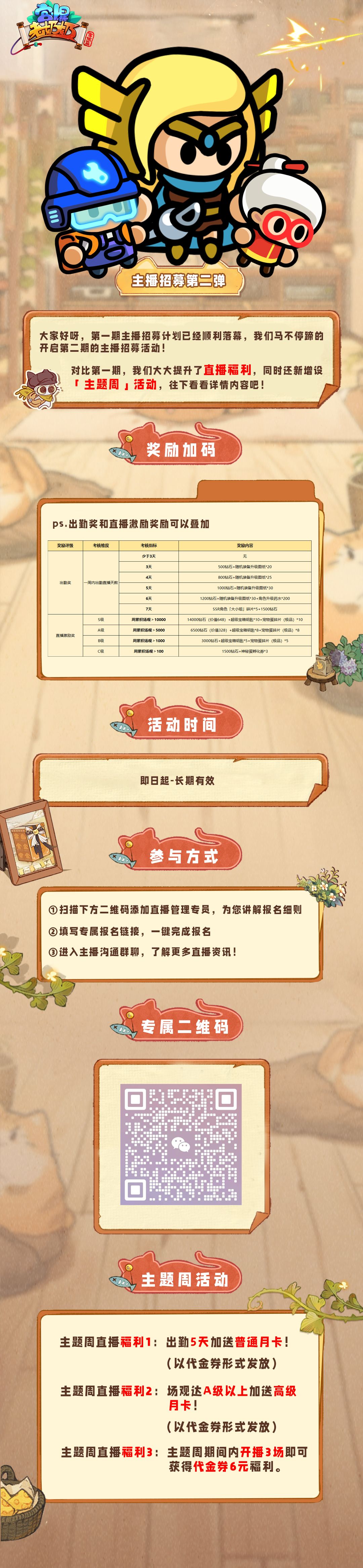 各位主播只要在活动期间内参与,达到上述条件均可活动主题周加码奖励!