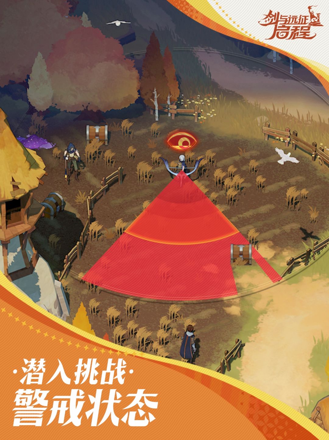 当守卫处于巡逻状态时,将会持续巡逻自身周围的一片区域。此时,大魔法师千万避免进入守卫面前的“红色扇形范围”,否则会被守卫发现,进入下一状态——警戒状态!
