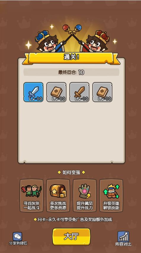 最后通关时会直接显示获得的装备等级,可以直接做出取舍,前往国王页面进行装备的操作