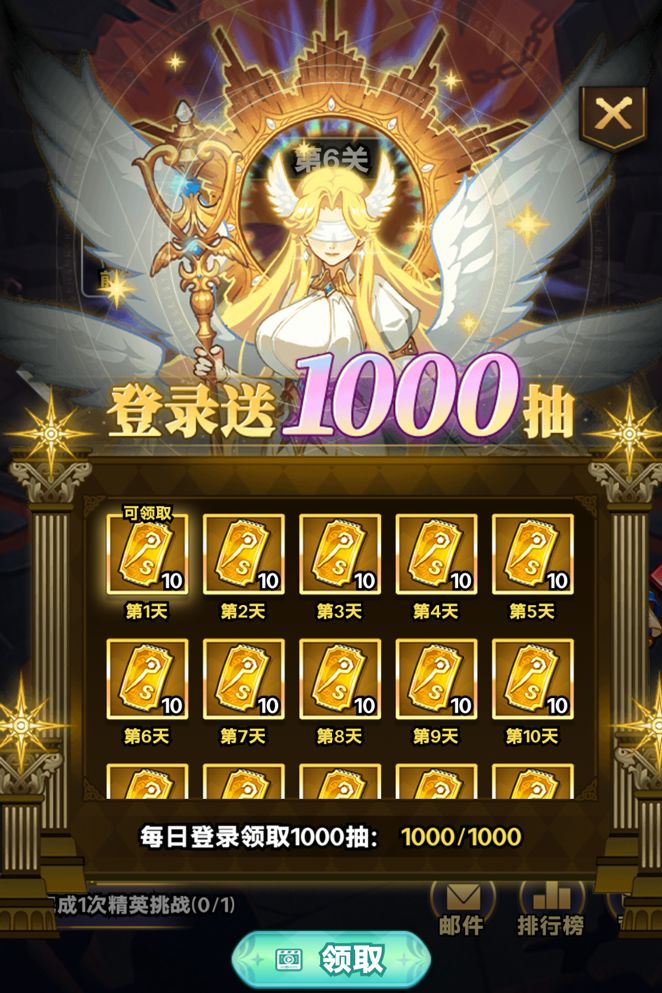 点击主页面上方【登录1000抽】活动入口,点击进入活动页面。