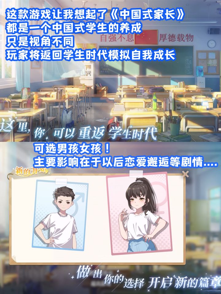 这款游戏像是《中国式家长》的另一个视角,你重回学生时代了,怎样养成选择度过自己的人生?