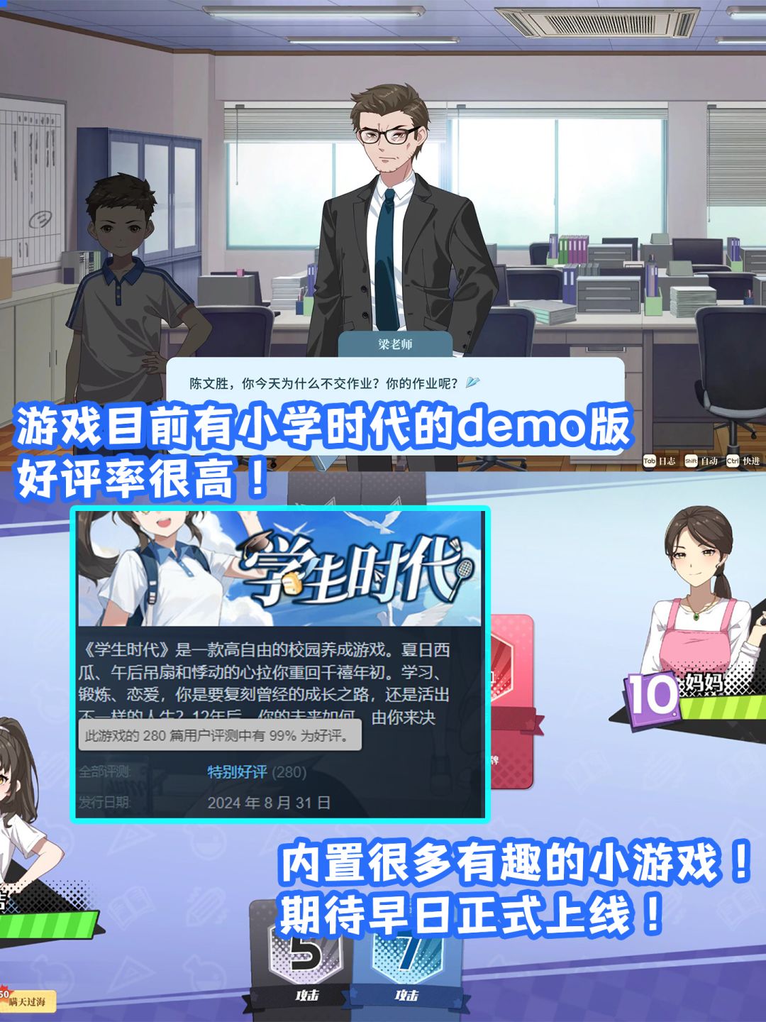 希望游戏早日上线~如果问我想不想回到学生时代,答案应该是否定的,但咱确实很喜欢模拟养成类的游戏呀!