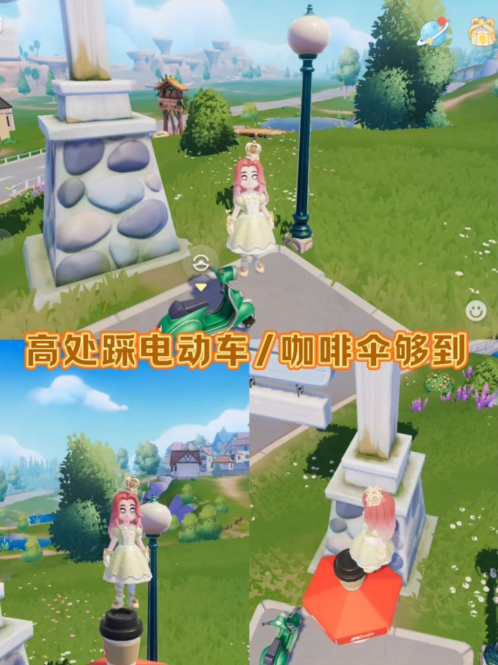 [一R]跳跃:长按可以大跳,够不到的位置可以掏出电动车/咖啡伞来踩