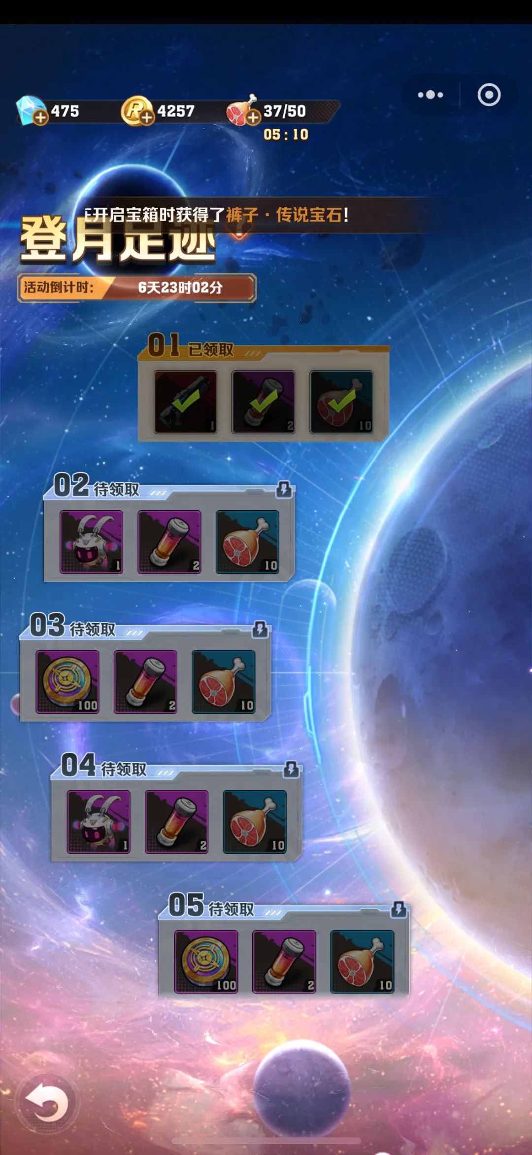 2.月表探测仪*33.银河币*3004.焕新试剂*145.体力*70