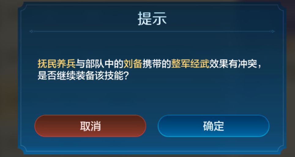 1、勇冠三军与迁延战术、动于九天、匹夫奋勇以及张飞的诞将天威冲突。匹夫奋勇与避实击虚也会冲突。雷必达改版后的自带技能的增伤也会与动于九天相冲突。