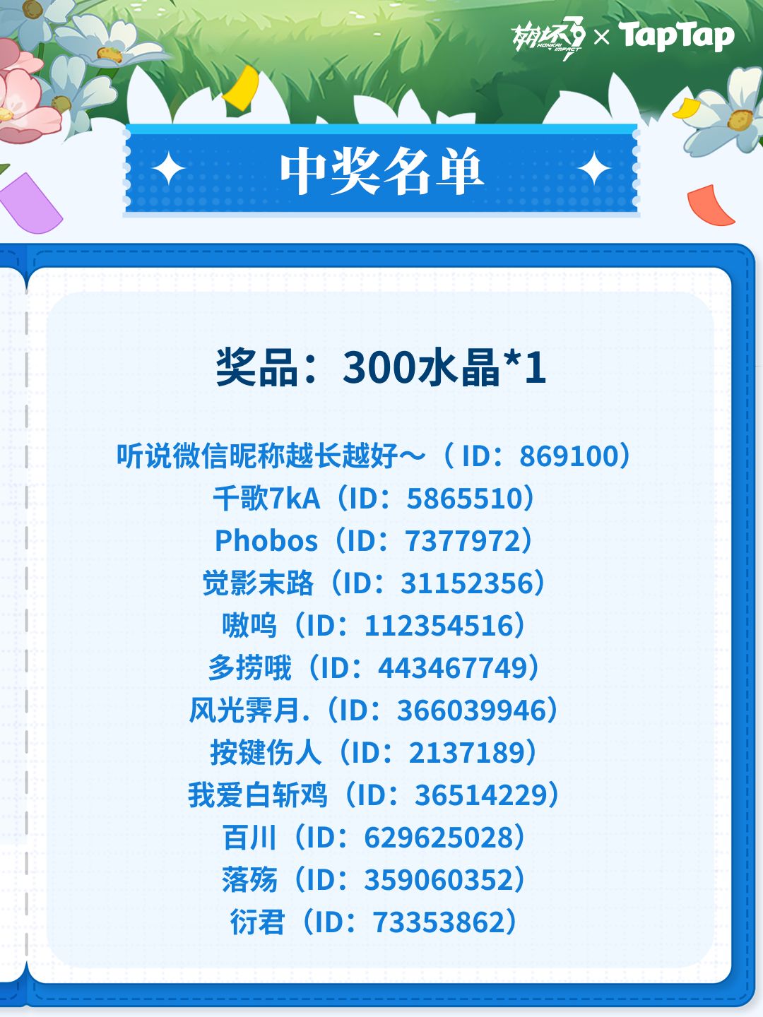 3.活动结束后,获奖名单将在30个工作日内在本条动态公示,获奖用户将收到TapTap社区站内信通知,舰长需在7个自然日内完成中奖信息填写,逾期视为放弃奖励;