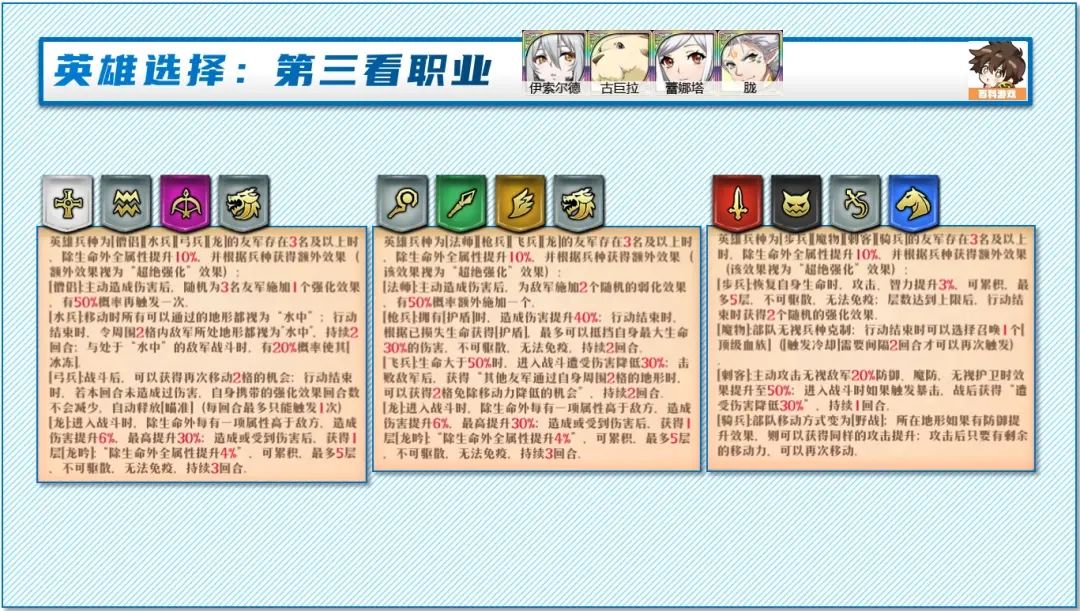 第三,看职业。主要目标就是为了触发职业小队技。新版大航海的职业小队技已经很弱化了,不需要只选一个职业组。不过龙兵、弓兵、水兵、刺客、枪兵能吃到小队技的话,可以明显提升战斗力,这几个职业尽量选同组的。龙职业在大航海中非常受欢迎。就是因为同时在两个组里。