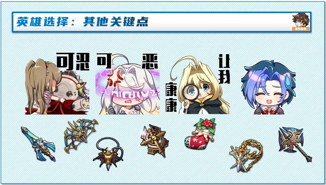第七,选英雄的时候不要有惯性思维。不是说只有奶妈才能奶,只有坦克才能扛怪。所有的智力英雄都可以做奶妈。尤利娅这种自身会回血的,配上护卫技能和射程天赋,就是一个非常厉害的坦克。第八,有一些英雄的装备技能选择面很窄。比如梓只适合物理锤,很容易拿不到武器,需要格外慎重。