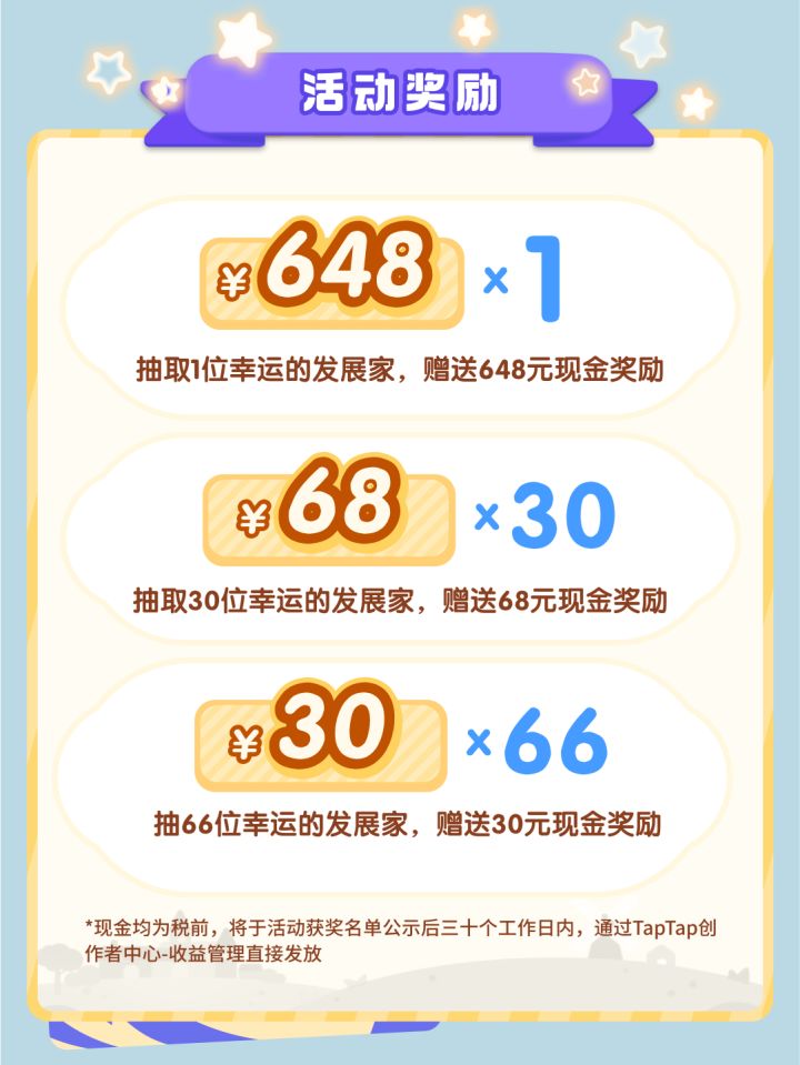 抽取30位幸运的发展家,赠送68元现金奖励