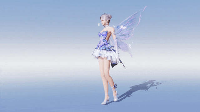 时装升级后,身上的衣装可切换为短裙,增添几分轻盈感。而提升至Lv5时,更有闪烁着洁白光晕的蝴蝶伴随在身后,缓缓舞动着翅膀,与精灵一同行动。